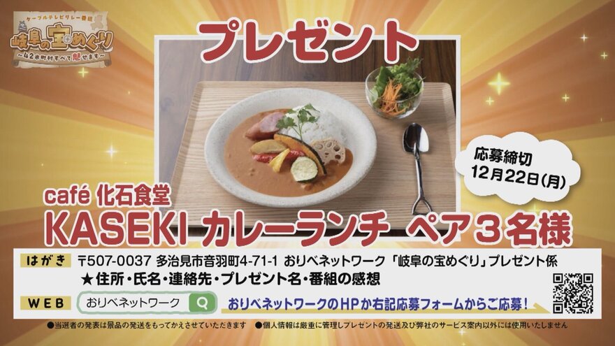 岐阜の宝めぐり 瑞浪市「cafe 化石食堂 KASEKI カレーランチ 」をペア3名様にプレゼント!【12/22(月)必着】