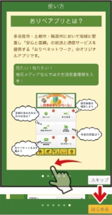 アプリの説明画面を確認(6画面)し、右下の「はじめる」を押す