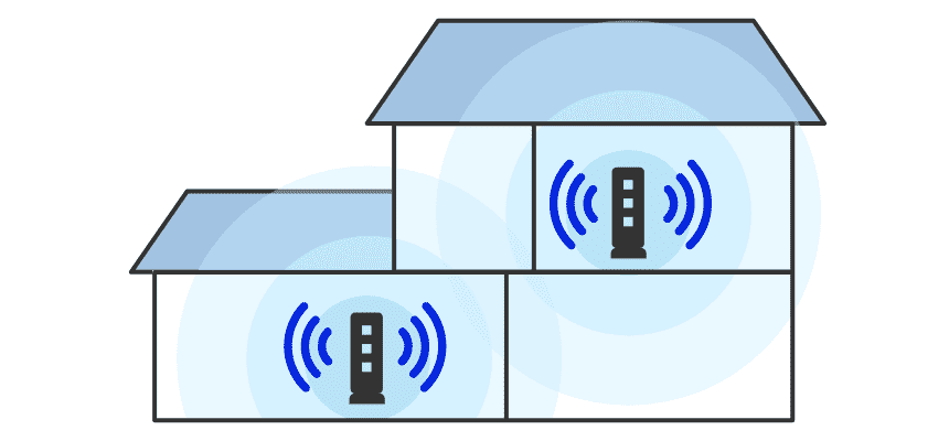 1台を親機、1台を中継器として設置することで、互いに通信しあい、家中すみずみまでWi-Fiを届けることができます。