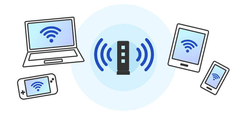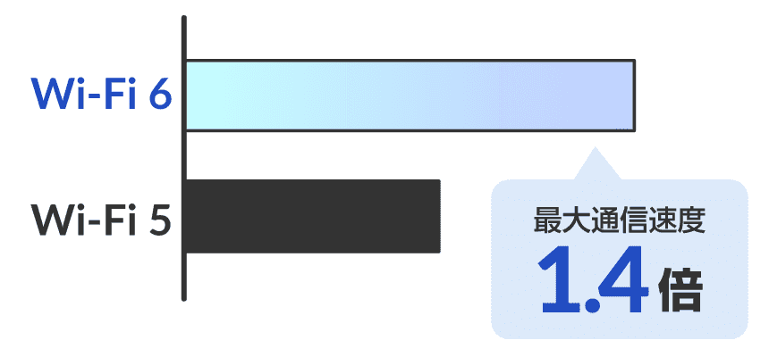パソコンやスマートフォン、ゲーム機など、同時接続が多い環境でもWi-Fi 6は快適に通信が可能です。